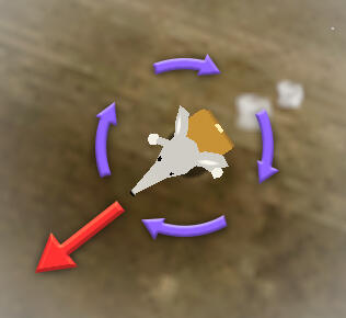 Orange line = Desired direction (controller input)