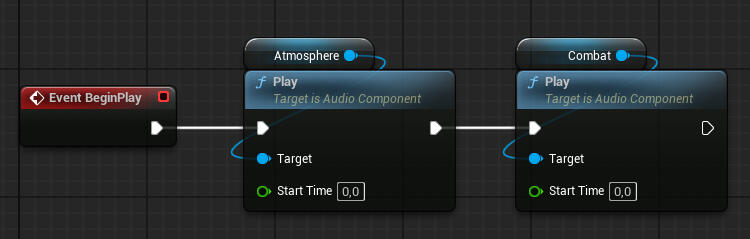 I implemented a dynamic music system that would automatically play both tracks simultaneously and handle fading between the layers according to configurable parameters. I connected the system to fade in the intense layer when enemies were near the player, and then fade out after they were defeated.